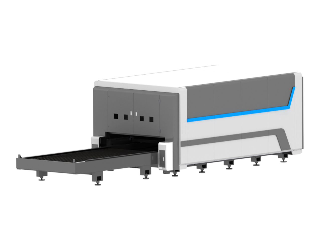 The motion mechanism employs gear racks, linear guide rails, and other transmissions, along with direct linear guide rail guidance, ensuring high speed, high precision, and high performance of the equipment.